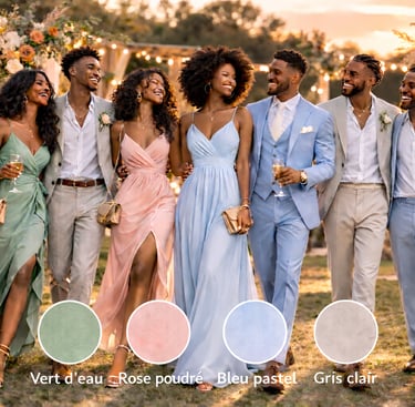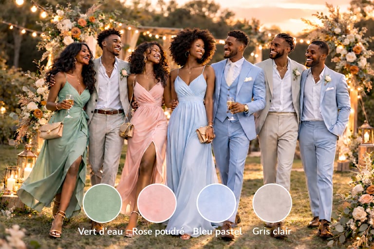 Les couleurs trop foncés ne s’accorderont pas à la douceur de cette célébration. Nous avons imaginé cette journée comme un moment de joie et de lumière et nous espérons que vous la vivrez pleinement à nos côtés.